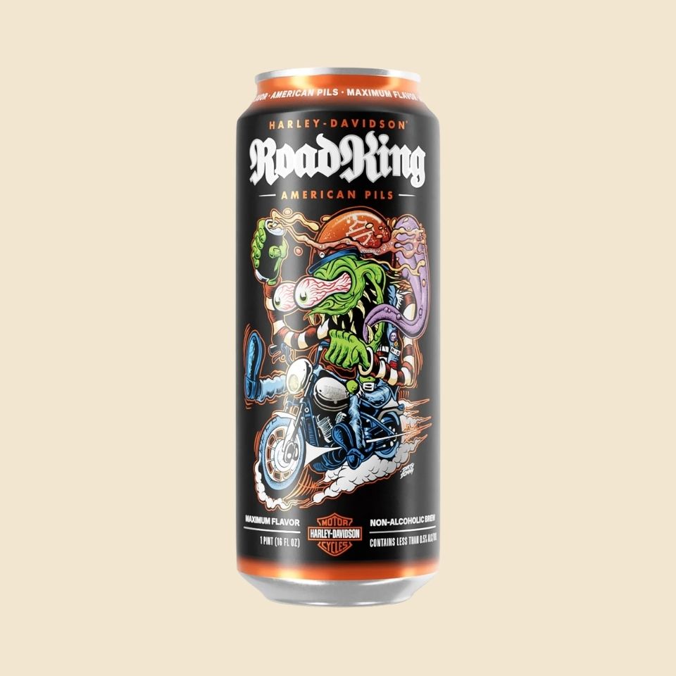 Composed of high-quality ingredients including water, malted barley, hops, and yeast, Road King is the ideal choice for relaxation after a long ride, unwinding at the end of a busy day, or enjoying good times with family and friends. With the prestige of Harley-Davidson and Wisconsin Brewing Company behind it, this non-alcoholic pilsner proudly stands as a flavorful alternative for any traditional beer occasion.